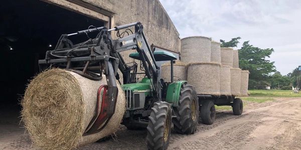 feno em fardos cilíndricos (rolos) de 1,30 metro de diametro com aprox 240kg cada - altura 1,30 metro.